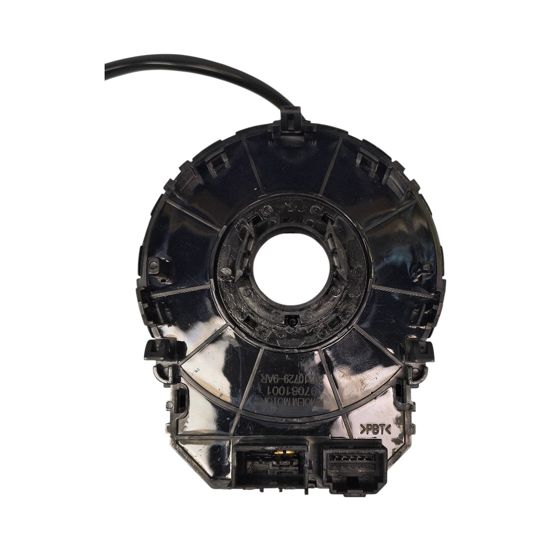Esta pieza es fundamental para conectar los sistemas eléctricos de la columna de dirección con el volante, permitiendo que este gire sin perder contacto.